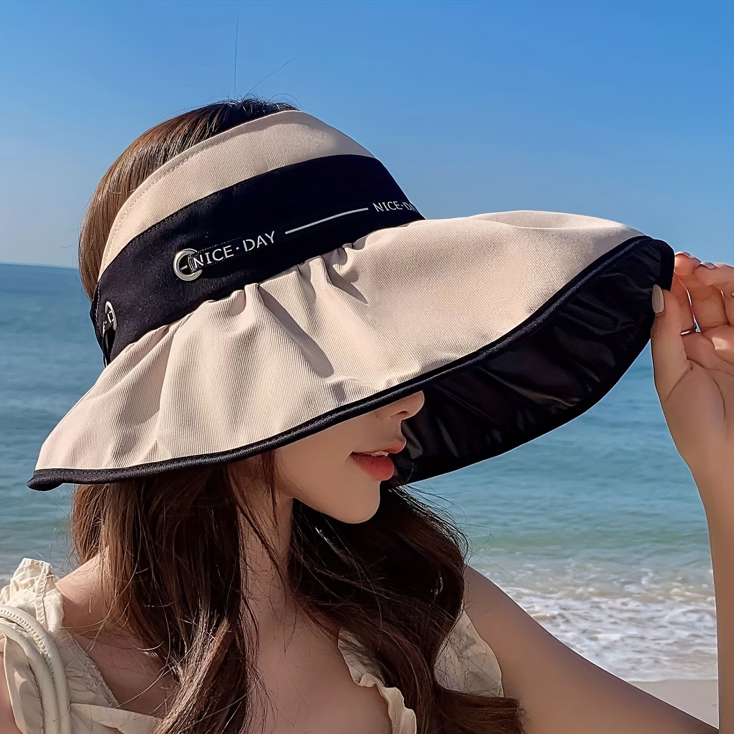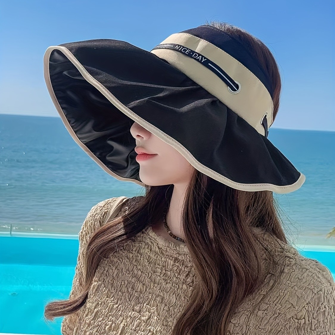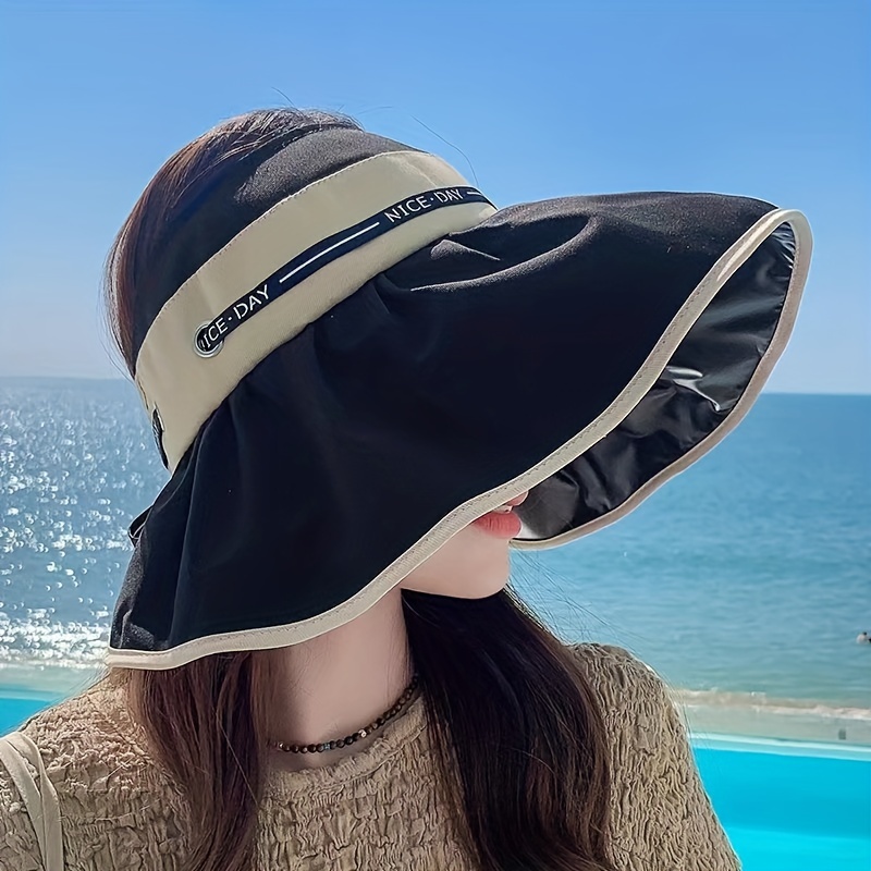 Large brim empty top hat women's fashion lace-up outdoor UV protection sunscreen sun hat Breathable foldable fisherman's hat