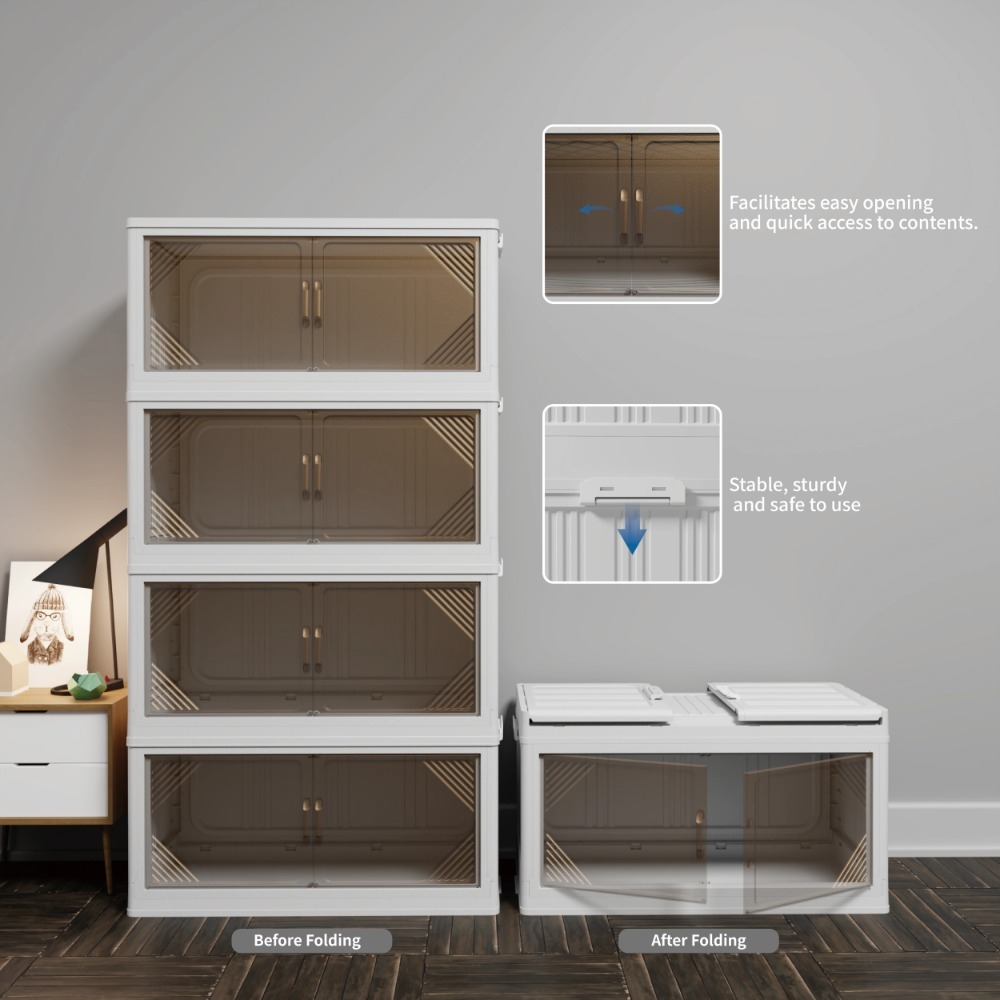 301QT 2-Pack 35.4’’ Wide Transparent Plastic Storage Cabinets for Closet Organizers and Storage, Folding Storage Box, Stackable Storage Bins with Open Front Door