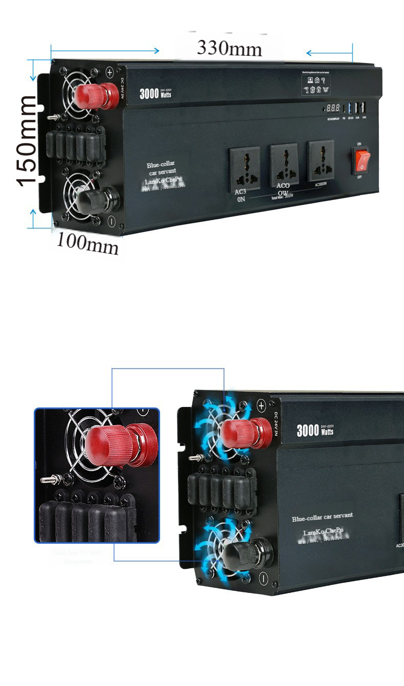 Output voltage 110/220V, output power 3000W, input voltage 12V