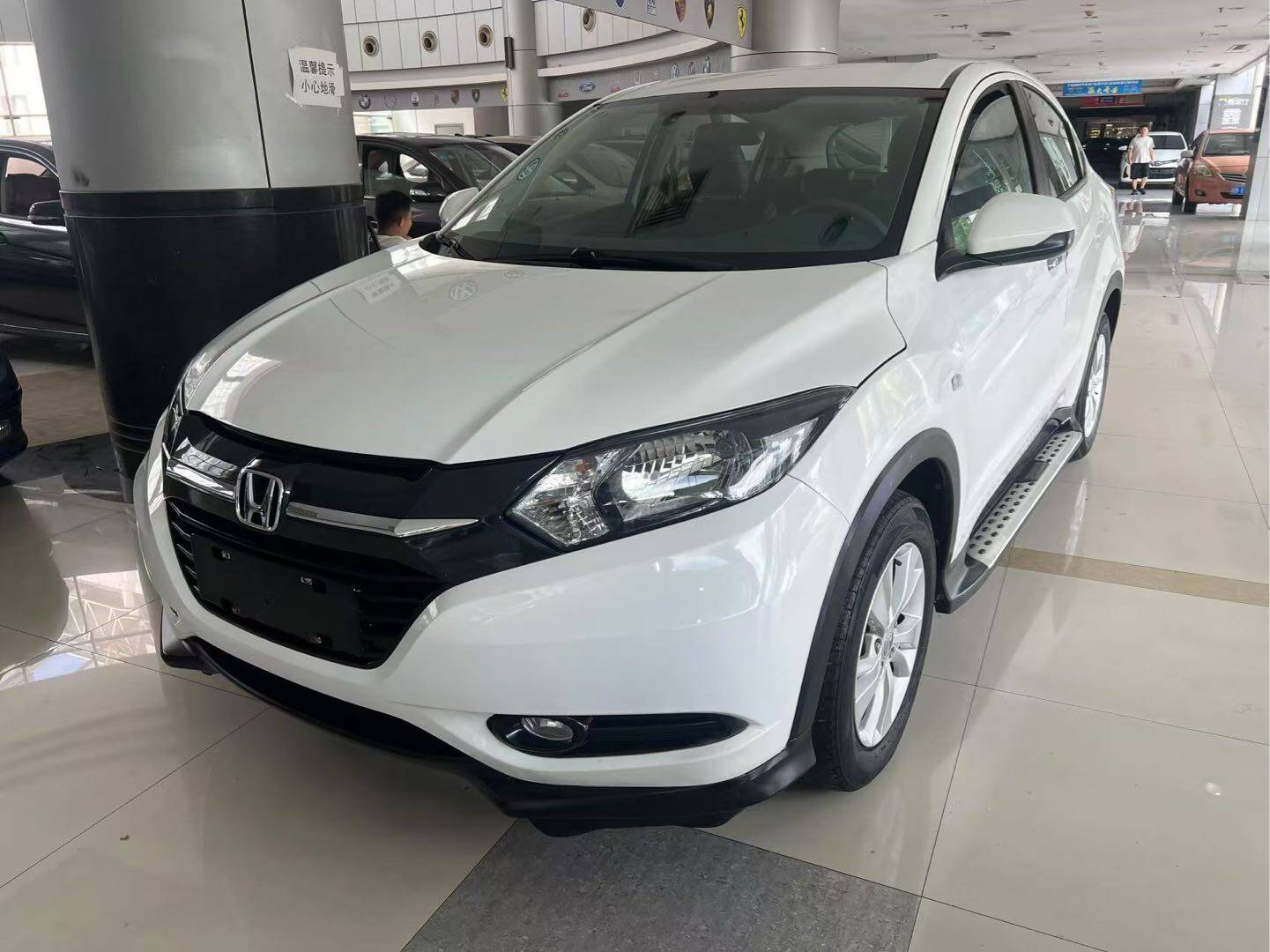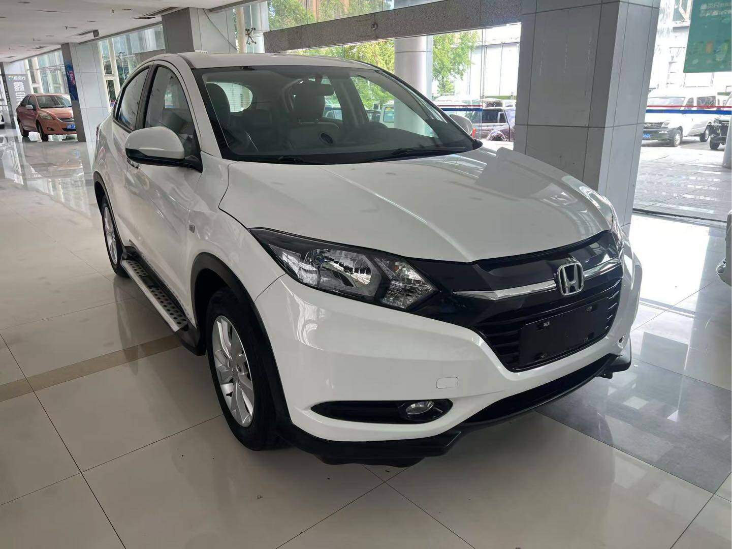 车辆描述:到店白色越野车 2016年7月本田缤智1.5AT舒适型,公里数8万,支持检测,来电看车方便 表显里程:8.00万公里 厂商: 广汽本田 级别: 小型SUV 能源类型: 汽油 环保标准: 国V 上市时间: 2015.03 最大功率(kW): 96 最大扭矩(N·m): 155 变速箱: CVT无级变速 车身结构: 5门5座SUV 发动机: 1.5L 131马力 L4 长*宽*高(mm): 4294*1772*1605 NEDC综合油耗(L/100km): 5.9 实测0-100km/h加速(s): 10.63 实测100-0km/h制动(m): 41.07 实测油耗(L/100km): 6 整车质保: 三年或10万公里 整备质量(kg): 1204 车身: 长度(mm): 4294 宽度(mm): 1772 高度(mm): 1605 轴距(mm): 2610 前轮距(mm): 1535 后轮距(mm): 1540 车身结构: SUV 车门数(个): 5 座位数(个): 5 油箱容积(L): 50 后备厢容积(L): 437-1456 发动机: 发动机型号: L15B 排量(mL): 1498 排量(L): 1.5 进气形式: 自然吸气 气缸排列形式: L 气缸数(个): 4 每缸气门数(个): 4 压缩比: 11.5 配气机构: DOHC 最大马力(Ps): 131 最大功率(kW): 96 最大功率转速(rpm): 6600 最大扭矩(N·m): 155 最大扭矩转速(rpm): 4600 发动机特有技术: i-VTEC 能源类型: 汽油 燃油标号: 92号 供油方式: 直喷 缸盖材料: 铝合金 缸体材料: 铝合金 环保标准: 国V 变速箱: 简称: CVT无级变速 挡位个数: 无级变速 变速箱类型: 无级变速箱(CVT) 底盘转向: 驱动方式: 前置前驱 前悬架类型: 麦弗逊式独立悬架 后悬架类型: 扭力梁式非独立悬架 助力类型: 电动助力 车体结构: 承载式 车轮制动: 前制动器类型: 通风盘式 后制动器类型: 盘式 驻车制动类型: 电子驻车 前轮胎规格: 215/60 R16 后轮胎规格: 215/60 R16 备胎规格: 非全尺寸 被动安全标配选配-无: 主/副驾驶座安全气囊: 主 / 副 前/后排侧气囊: 前 / 后- 主动安全标配选配-无: ABS防抱死: 制动力分配(EBD/CBC等): 刹车辅助(EBA/BAS/BA等): 牵引力控制(ASR/TCS/TRC等): 车身稳定控制(ESC/ESP/DSC等): 安全带未系提醒: ISOFIX儿童座椅接口: 驾驶操控标配选配-无: 自动驻车: 上坡辅助: 驾驶硬件标配选配-无: 驾驶辅助影像: 倒车影像 驾驶功能标配选配-无: 外观/防盗标配选配-无: 轮圈材质: 铝合金 发动机电子防盗: 车内中控锁: 钥匙类型: 遥控钥匙 车外灯光标配选配-无: 近光灯光源: 卤素 远光灯光源: 卤素 车前雾灯: 大灯高度可调: 天窗/玻璃标配选配-无: 前/后电动车窗: 前 / 后 车窗防夹手功能: 车内化妆镜: 后雨刷: 外后视镜标配选配-无: 外后视镜功能: 电动调节 屏幕/系统标配选配-无: 中控彩色屏幕: 蓝牙/车载电话: 车载CD/DVD: 单碟CD 智能化配置标配选配-无: 方向盘/内后视镜标配选配-无: 方向盘位置调节: 手动上下+前后调节 多功能方向盘: 行车电脑显示屏幕: 内后视镜功能: 手动防眩目 车内充电标配选配-无: 多媒体/充电接口: USBAUX 座椅配置标配选配-无: 座椅材质: 织物 主座椅调节方式: 前后调节靠背调节高低调节(2向) 副座椅调节方式: 前后调节靠背调节 第二排座椅调节: 靠背调节 后排座椅放倒形式: 比例放倒 前/后中央扶手: 前 / 后- 音响/车内灯光标配选配-无: 扬声器数量: 4-5喇叭 空调/冰箱标配选配-无: 空调温度控制方式: 手动空调