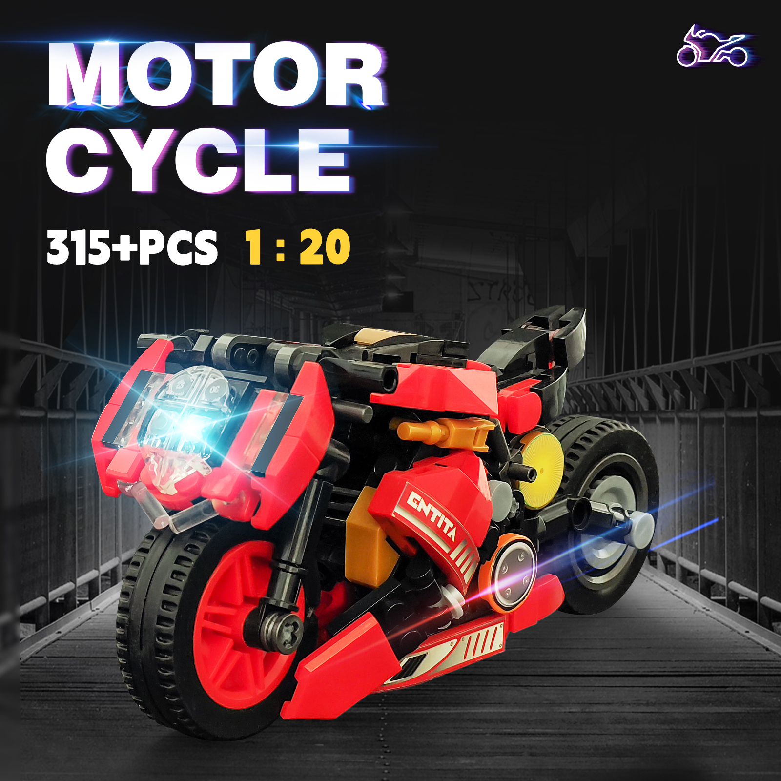 1:20摩托车积木模型300+PCS小颗粒组装儿童玩具男孩生日礼物