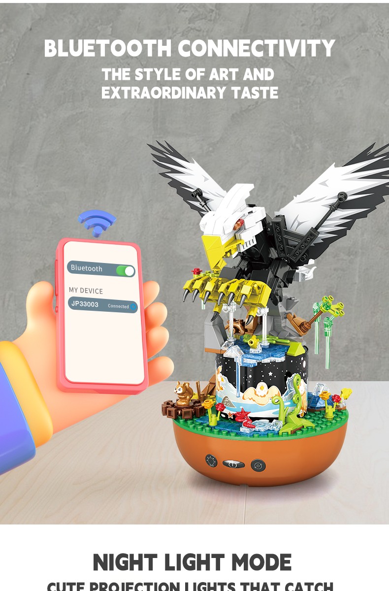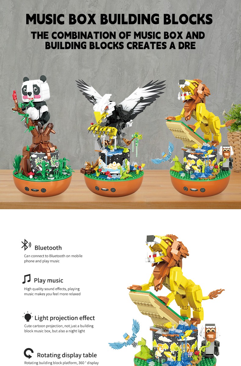 蓝牙音乐盒积木,可连接手机蓝牙随心播放想听的音乐,三色灯光自由变换,即是音乐盒也是装饰灯。
