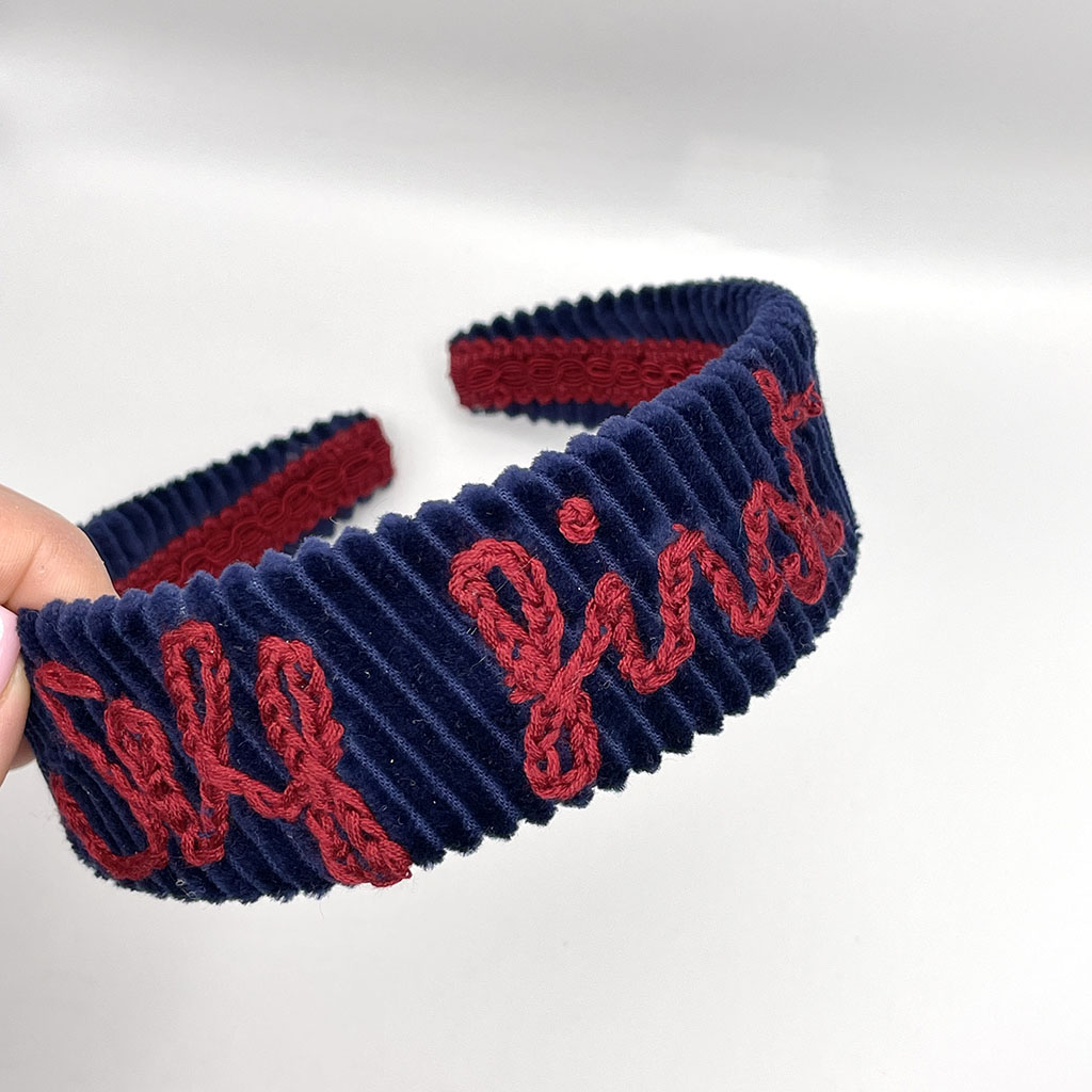 照亮你的脸庞,颂扬你的独特。 用 "Self First" 发箍为你的风格增添一份光彩与个性。这款配饰完全由纯手工打造,将灯芯绒的永恒优雅与强有力的信息完美结合。 其独特的蓝色调经过精心设计,能为脸庞增添动人光彩,成为提升任何发型的完美伴侣。 彰显不凡的细节: 专属信息: 酒红色锁链绣工艺,绣有 "Self First" 字样。 经典设计: 4厘米的高度,打造既飒爽又时髦的造型。 高级质感: 柔软的深蓝色灯芯绒。 匠心手作: 100% 手工缝制,倾注裁缝般的细腻心思。