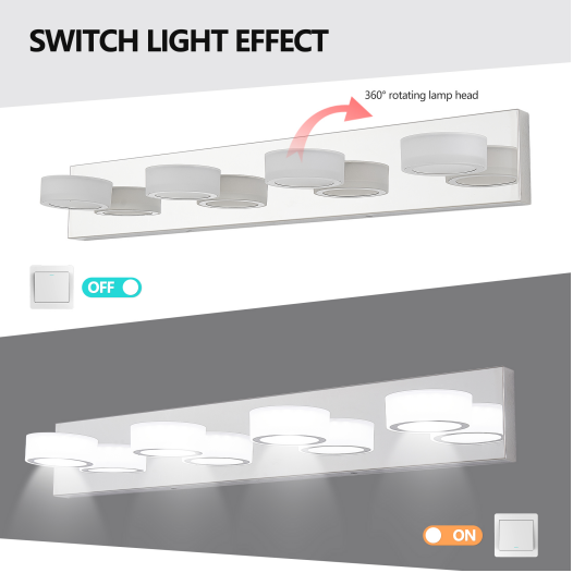 材质:铁与亚克力,颜色:铬色,光源类型:LED,亮度调节:支持调光(请自配调光器)适用空间:浴室、更衣室等安装方式:壁挂式供电方式:硬接线显色指数:85,流明:1560,色温:6000K,功率:24瓦,电压:100-120伏