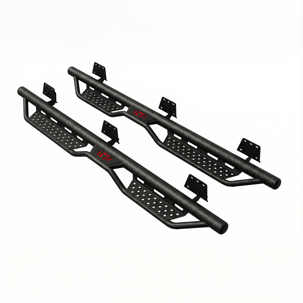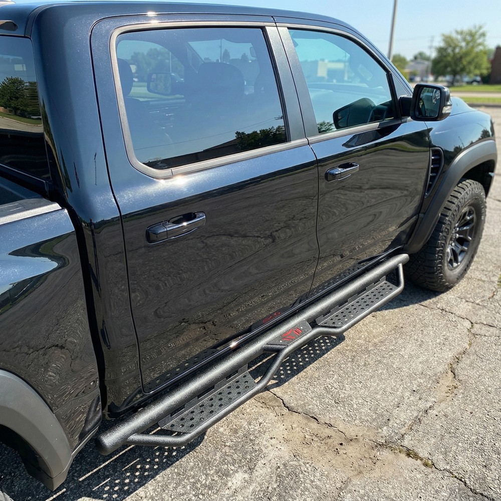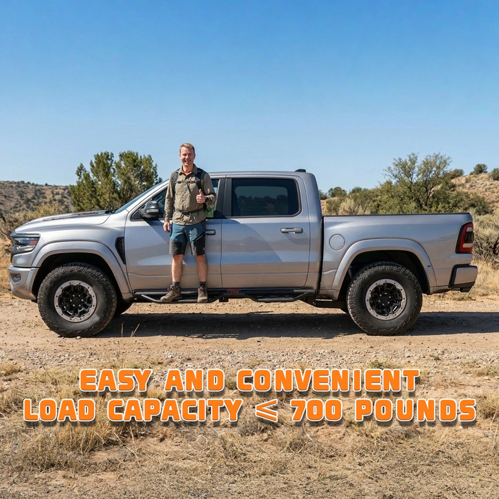 製品の特長 当製品は管径76mmの設計で、根管の直径は3インチです。管壁を厚くし、一体成形により溶接不良がなく、荷重耐力と全体の強度が向上しています。【製品の特長】丈夫で耐久性に優れ、独自のパウダーコーティング加工により抜群の防錆・耐腐食性能を発揮するため、どのような条件下でも安心してドライブいただけます。レーザー加工によるスケートボードのデッキ表面は滑りにくく、グリップ力に優れており、700ポンドまでの重量にも耐えてたわみません。 サイドステップは2段式のペダル設計を採用しており、リフトキットや特大サイズのタイヤを装着した車両においてより高い利便性を提供します。3本パイプ構造により、車両の底面および側面をより効果的に保護し、サイドスカートやサスペンションシステムの障害物に引っかかるのを防ぎます。 【ボルト取り付け】溶接仕様のブラケットにより、さらなる強度を確保しています。パッケージには補強バー2本、ブラケット一式、金具が含まれています。DIY向けの取り付け説明書も同封されており、切断や穴あけ作業は不要で、所要時間は約20分です。 【便利なサービスとご注意】ステーはペダルに事前に溶接されていません! 安心してご購入ください! ご注文の前に、必ずメイン製品のキャブサイズの画像をご確認ください。 画像と文章による説明 製品情報: 製品情報: タイプ:ペダル 色:黒 材質:炭素鋼 外観処理: パウダーコーティング 製品サイズ: 81.9x11.8x7.7インチ アイテムの重量:55.78ポンド 車両サービスタイプ: 2019 ~ 2026種類のドジャースram 1500四門ピカピカに適用 件数:2件 最大荷重能力:700ポンド 車両位置: 左側右側 製品包装: 2 x側ペダル/衝突防止レバー/ペダル (運転者側/乗客側) 1 x diyインストールマニュアル 1 xすべてのアクセサリーセット 適用範囲: 2019-2026モデルのドジャースram 1500四門crew cabモデルにのみ適用され、ram 1500の新しい車体スタイルにのみ適用されます 2019 ~ 2026種類のram 1500クラシックには適用されません ハーフサイズのバックドアを2つ備えた4ドア運転室の車種には適用されない。 (ご注文前に商品画像をご確認ください。画像はキャブサイズを示しています。)