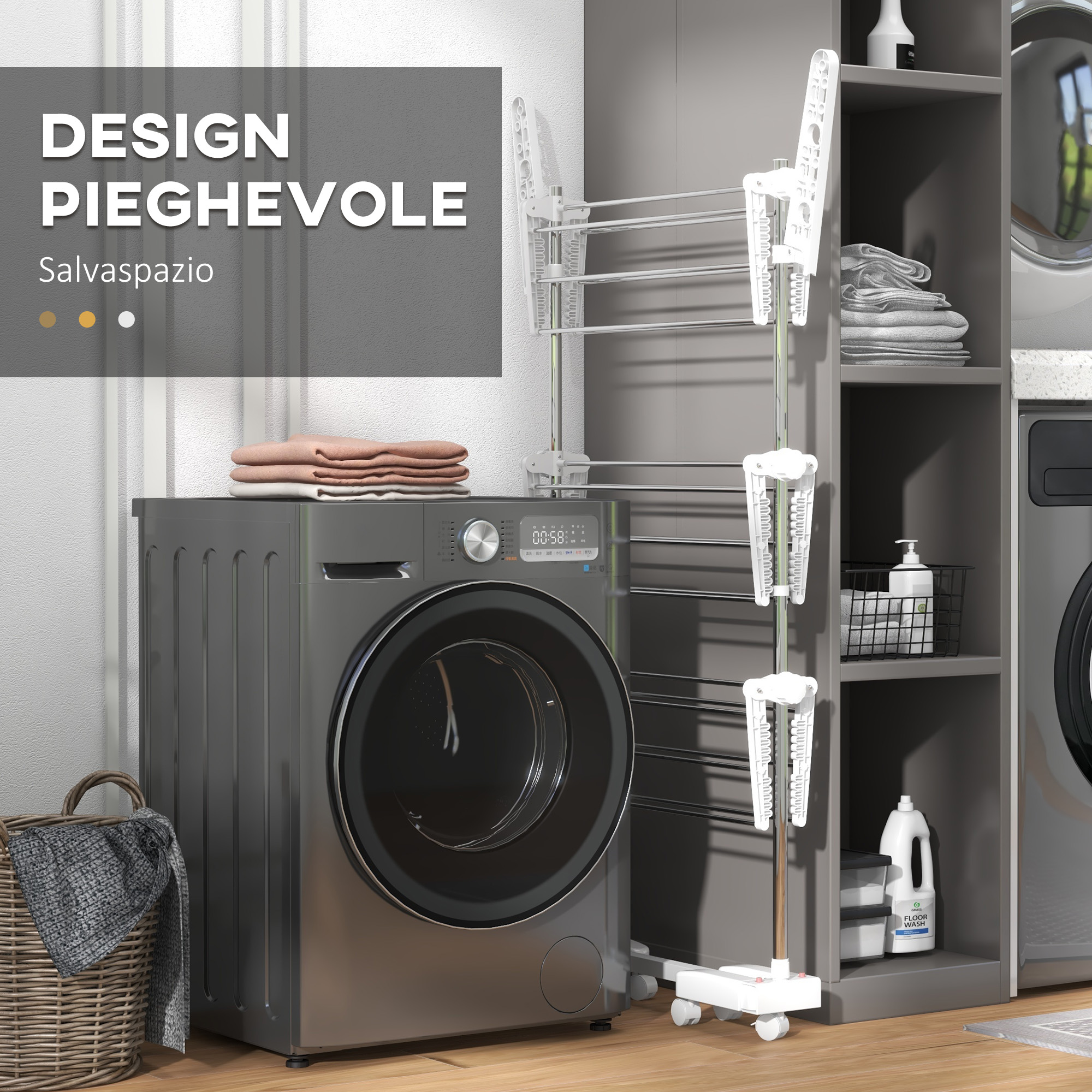 Эта сушилка идеально подходит для сушки одежды на открытом воздухе. Он оснащен тремя полками с регулируемой высотой, которые обеспечивают достаточно места как для внутреннего использования, так и для балкона с ограниченным пространством. Материал из нержавеющей стали, антикоррозийный и долговечный. Под основанием установлено 6 колес, 2 из которых с тормозом, что удобно для движения и устойчиво. Складной дизайн, удобный для хранения.