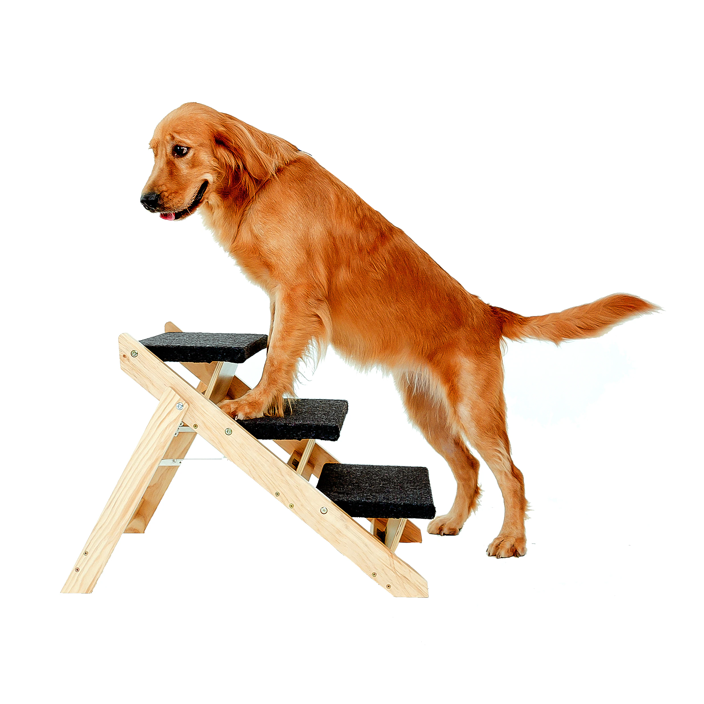 Wood Pet Stairs/Pet Steps - Foldable 3 Levels Dog Stairs & Ramp Perfect for Beds and Cars - Portable Dog/Cat Ladder Up to 110 Pounds