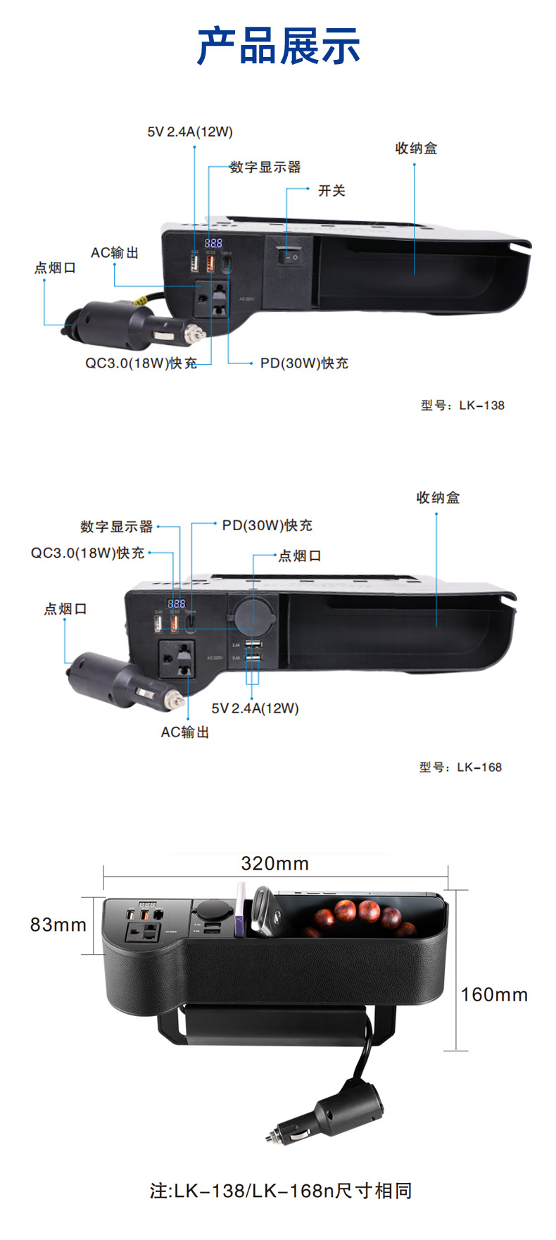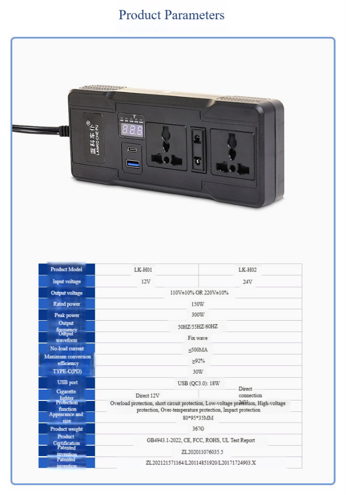 输出电压110/220V,输出功率160W,输出频率60/55/50HZ