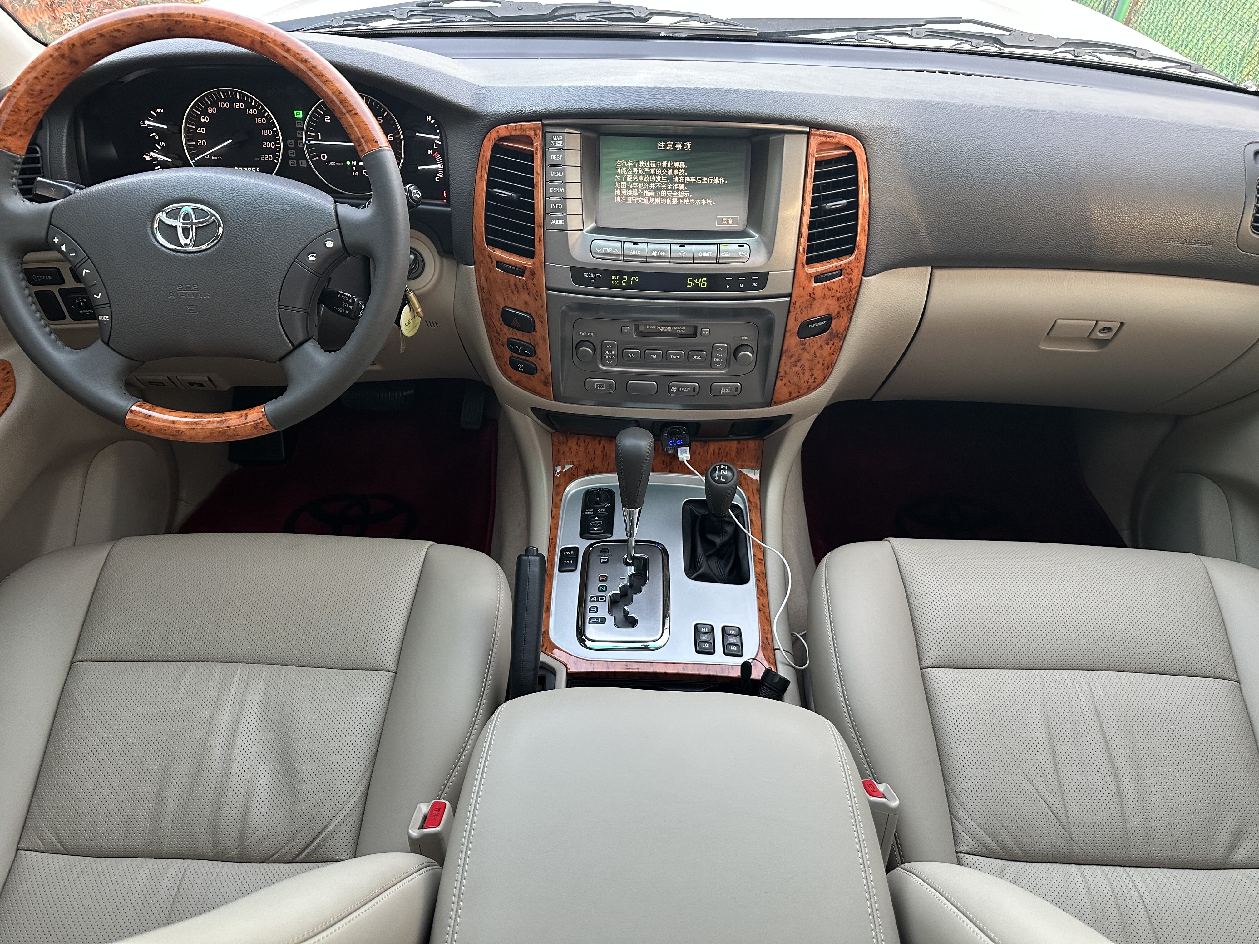 车辆描述:车况极品,原版,支持任何机构检测 表显里程:23.30万公里 厂商: 一汽丰田 级别: 中大型SUV 能源类型: 汽油 环保标准: 欧III 最大功率(kW): 175 最大扭矩(N·m): 434 变速箱: 5挡自动 车身结构: 5门8座SUV 发动机: 4.7L 238马力 V8 长*宽*高(mm): 5080*1940*1890 官方0-100km/h加速(s): 11.7 最高车速(km/h): 180 实测0-100km/h加速(s): 9.1 实测100-0km/h制动(m): 42.5 整车质保: 两年或5万公里 整备质量(kg): 2590 车身: 长度(mm): 5080 宽度(mm): 1940 高度(mm): 1890 轴距(mm): 2850 前轮距(mm): 1620 后轮距(mm): 1615 满载最小离地间隙(mm): 220 车身结构: SUV 车门数(个): 5 座位数(个): 8 油箱容积(L): 96 发动机: 发动机型号: 2UZ-FE V8 排量(mL): 4664 排量(L): 4.7 进气形式: 自然吸气 气缸排列形式: V 气缸数(个): 8 每缸气门数(个): 4 压缩比: 9.6 配气机构: DOHC 缸径(mm): 94 行程(mm): 84 最大马力(Ps): 238 最大功率(kW): 175 最大功率转速(rpm): 4800 最大扭矩(N·m): 434 最大扭矩转速(rpm): 3400 能源类型: 汽油 燃油标号: 92号 供油方式: 多点电喷 缸盖材料: 铝合金 缸体材料: 铝合金 环保标准: 欧III 变速箱: 简称: 5挡自动 挡位个数: 5 变速箱类型: 自动变速箱(AT) 底盘转向: 驱动方式: 前置四驱 四驱形式: 全时四驱 中央差速器结构: 托森式差速器 前悬架类型: 双叉臂式独立悬架 后悬架类型: 四连杆式非独立悬架 助力类型: 机械液压助力 车体结构: 非承载式 车轮制动: 前制动器类型: 通风盘式 后制动器类型: 通风盘式 驻车制动类型: 手刹 前轮胎规格: 275/65 R17 后轮胎规格: 275/65 R17 备胎规格: 全尺寸 被动安全标配选配-无: 主/副驾驶座安全气囊: 主 / 副 主动安全标配选配-无: ABS防抱死: 制动力分配(EBD/CBC等): 刹车辅助(EBA/BAS/BA等): 牵引力控制(ASR/TCS/TRC等): 车身稳定控制(ESC/ESP/DSC等): 驾驶操控标配选配-无: 可变悬架功能: 悬架软硬调节 四驱/越野标配选配-无: 中央差速器锁止功能: 驾驶硬件标配选配-无: 前/后驻车雷达: 前- / 后 驾驶功能标配选配-无: 巡航系统: 定速巡航 卫星导航系统: 外观/防盗标配选配-无: 轮圈材质: 铝合金 发动机电子防盗: 车内中控锁: 车外灯光标配选配-无: 车前雾灯: 大灯清洗装置: 天窗/玻璃标配选配-无: 天窗类型: 电动天窗 前/后电动车窗: 前 / 后 车窗防夹手功能: 后风挡遮阳帘: 后雨刷: 外后视镜标配选配-无: 外后视镜功能: 电动调节电动折叠 屏幕/系统标配选配-无: 中控彩色屏幕: 蓝牙/车载电话: 后排液晶屏幕: 车载CD/DVD: 多碟DVD系统 智能化配置标配选配-无: 方向盘/内后视镜标配选配-无: 方向盘材质: 皮质 方向盘位置调节: 手动上下+前后调节 多功能方向盘: 内后视镜功能: 自动防眩目 车内充电标配选配-无: 座椅配置标配选配-无: 座椅材质: 真皮 主座椅调节方式: 前后调节靠背调节高低调节(4向) 副座椅调节方式: 前后调节靠背调节 主/副驾驶座电动调节: 主 / 副- 前排座椅功能: 加热 电动座椅记忆功能: 后排座椅放倒形式: 比例放倒 前/后中央扶手: 前 / 后 后排杯架: 音响/车内灯光标配选配-无: 扬声器数量: 6-7喇叭 空调/冰箱标配选配-无: 空调温度控制方式: 自动空调