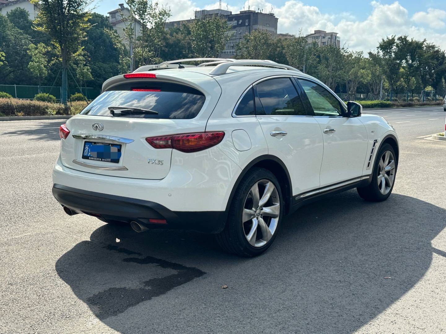 车辆描述:到店白色越野车 2012年3月英菲尼迪FX35 超越版,公里数15.8万,支持检测,来电看车方便 表显里程:15.80万公里 厂商: 英菲尼迪(进口) 级别: 中大型SUV 能源类型: 汽油 环保标准: 欧IV 上市时间: 2011.07 最大功率(kW): 244 最大扭矩(N·m): 350 变速箱: 7挡手自一体 车身结构: 5门5座SUV 发动机: 3.5L 332马力 V6 长*宽*高(mm): 4862*1928*1679 NEDC综合油耗(L/100km): 12 整车质保: 四年或10万公里 整备质量(kg): 2002 车身: 长度(mm): 4862 宽度(mm): 1928 高度(mm): 1679 轴距(mm): 2885 前轮距(mm): 1635 后轮距(mm): 1640 满载最小离地间隙(mm): 188 车身结构: SUV 车门数(个): 5 座位数(个): 5 油箱容积(L): 90 发动机: 排量(mL): 3498 排量(L): 3.5 进气形式: 自然吸气 气缸排列形式: V 气缸数(个): 6 每缸气门数(个): 4 配气机构: DOHC 最大马力(Ps): 332 最大功率(kW): 244 最大功率转速(rpm): 6800 最大扭矩(N·m): 350 最大扭矩转速(rpm): 4800 发动机特有技术: 连续可变气门正时控制系统 能源类型: 汽油 燃油标号: 95号 供油方式: 多点电喷 缸盖材料: 铝合金 缸体材料: 铝合金 环保标准: 欧IV 变速箱: 简称: 7挡手自一体 挡位个数: 7 变速箱类型: 手自一体变速箱(AT) 底盘转向: 驱动方式: 前置四驱 四驱形式: 全时四驱 中央差速器结构: 多片离合器 前悬架类型: 双叉臂式独立悬架 后悬架类型: 多连杆式独立悬架 助力类型: 电子液压助力 车体结构: 承载式 车轮制动: 前制动器类型: 通风盘式 后制动器类型: 通风盘式 驻车制动类型: 脚刹 前轮胎规格: 265/45 R21 后轮胎规格: 265/45 R21 备胎规格: 非全尺寸 被动安全标配选配-无: 主/副驾驶座安全气囊: 主 / 副 前/后排侧气囊: 前 / 后 前/后排头部气囊(气帘): 前 / 后 主动安全标配选配-无: ABS防抱死: 制动力分配(EBD/CBC等): 刹车辅助(EBA/BAS/BA等): 牵引力控制(ASR/TCS/TRC等): 车身稳定控制(ESC/ESP/DSC等): 胎压监测功能: 安全带未系提醒: ISOFIX儿童座椅接口: 驾驶操控标配选配-无: 驾驶硬件标配选配-无: 前/后驻车雷达: 前 / 后 驾驶辅助影像: 倒车影像360度全景影像 驾驶功能标配选配-无: 巡航系统: 定速巡航自适应巡航 卫星导航系统: 外观/防盗标配选配-无: 轮圈材质: 铝合金 电动后备厢: 发动机电子防盗: 车内中控锁: 钥匙类型: 遥控钥匙 无钥匙启动系统: 无钥匙进入功能: 车外灯光标配选配-无: 近光灯光源: 氙气 自动头灯: 车前雾灯: 大灯高度可调: 大灯清洗装置: 天窗/玻璃标配选配-无: 天窗类型: 电动天窗 前/后电动车窗: 前 / 后 车窗防夹手功能: 后排侧隐私玻璃: 车内化妆镜: 后雨刷: 感应雨刷功能: 外后视镜标配选配-无: 外后视镜功能: 电动调节电动折叠后视镜记忆后视镜加热 屏幕/系统标配选配-无: 中控彩色屏幕: 蓝牙/车载电话: 后排液晶屏幕: 车载CD/DVD: 多碟CD系统多碟DVD系统 智能化配置标配选配-无: 方向盘/内后视镜标配选配-无: 方向盘材质: 皮质 方向盘位置调节: 电动上下+前后调节 多功能方向盘: 方向盘换挡拨片: 行车电脑显示屏幕: 内后视镜功能: 自动防眩目 车内充电标配选配-无: 座椅配置标配选配-无: 座椅材质: 真皮 主座椅调节方式: 前后调节靠背调节高低调节(2向)高低调节(4向) 副座椅调节方式: 前后调节靠背调节 主/副驾驶座电动调节: 主 / 副 前排座椅功能: 加热通风 电动座椅记忆功能: 后排座椅放倒形式: 比例放倒 前/后中央扶手: 前 / 后 后排杯架: 音响/车内灯光标配选配-无: 扬声器数量: 8-9喇叭 空调/冰箱标配选配-无: 空调温度控制方式: 自动空调